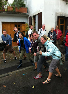 We woke up worried, it looked dark and stormy but we remained positive and in the end it was fabulous. Our task was to visit several vineyards in Montreux, having a course at each stop. We were given a wine glass to wear around our necks, a starting time and we were ready.