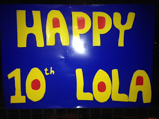 Poor Lola was forced to have a tenth birthday party last night. Her idea of a celebration would just be lying on her bed with a big piece of meat. But my idea of a celebration is a little different, lots of people, food, drinks, dancing.. And to be honest I think Lola enjoyed herself, she certainly liked her presents and seemed pretty excited about the cake. I was happy to be hostess again, as it seems like ages since I have had people over. Unfortunately, I think my food was pretty awful, forgot a key ingredient in my lasagna but people were polite and ate it anyways!